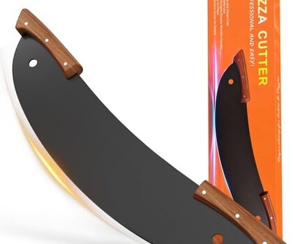 20-Inch Pizza Rocker Blade Cutter, Stainless Steel with Double Wooden Handles, Professional Pizza Slicer,Black