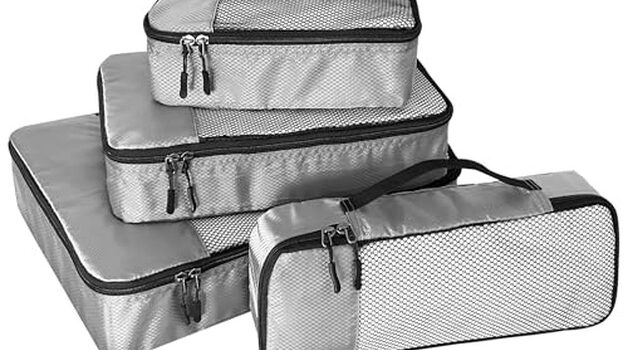 WTREE 4-Piece Packing Cubes Travel Accessories Set for Suitcases – Luggage Organizer Bags with Double Zipper – Mesh Top – Small/Medium/Large/Slim – Grey