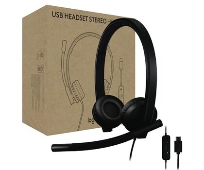 Logitech H570e USB Headset with Microphone for PC and Mac, USB-C Wired Headset with Stereo Sound, Noise-Canceling Mics and Inline Controls, Certified for Microsoft Teams, Black