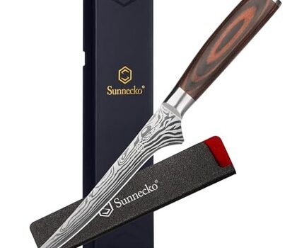 Sunnecko Boning Knife with Pakkawood Handle,6 inch High Carbon German Stainless Steel Fillet Knife for Meat and Poultry