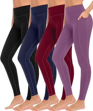 MIRITY 4 Pack Yoga Leggings with Pockets for Women – High Waist Tummy Control Pants for Workout