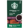 Starbucks VIA Instant Coffee, Dark Roast Coffee, Italian Roast, 100% Arabica, 12 boxes (96 packets total)