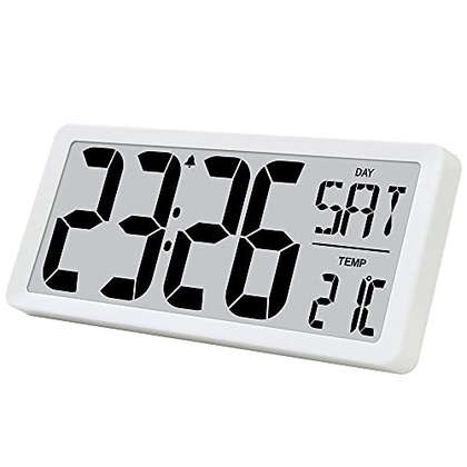 TXL 14.2″ Large Digital Day Wall Clock, Custom 8 Languages Calendar, Count up-Down Timer and Temp Reminder, 12/24Hr Desktop Alarm Clock with Extra Large Display for Home Office Studio Hotel, White