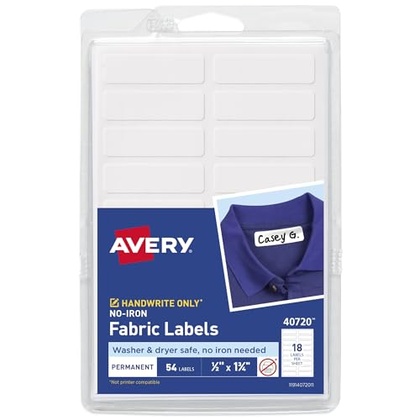 Avery No-Iron Fabric Labels, 1/2″ x 1-3/4″, Washer and Dryer-Safe Waterproof Labels, Non-Printable, 54 Total (40720)