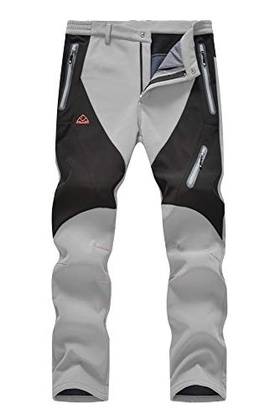 YSENTO Men’s Fleece Lined Ski Snow Pants Winter Waterproof Softshell Insulated Hiking Cargo Pants Light Grey Size 38