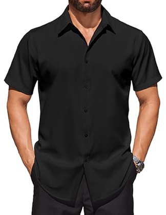 COOFANDY Mens Short Sleeve Dress Shirts Stretch Wrinkle Free Button Down Shirt Casual Summer Top Black