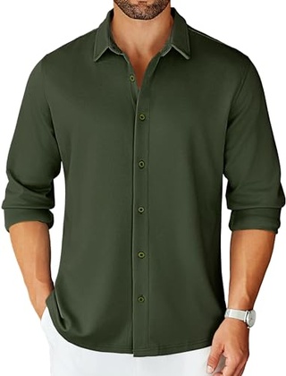 COOFANDY Untucked Shirts for Men Long Sleeve Button Down Shirts Wrinkle Free Dress Shirts Dark Green
