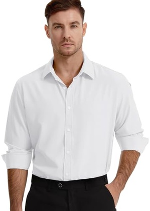 - 👨Comfortable to Wear:Experience ultimate comfort with our modern fit, featuring tapered long sleeves, higher armholes, and a slimmer cut at the chest and waist. This white button-down long sleeve shirt offers a fitted or muscle fit style for a comfortably tailored look.