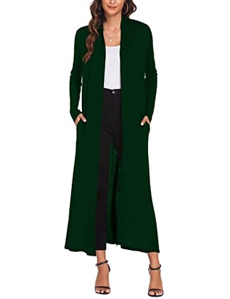 - Design Feature: Long sleeve cardigan has typical chest opening design and floor length, you can easily match it with your favorite top or dress; Extra long cardigans are suitable for most people, especially for tall women, or you can match with high-heeled shoes; Soft duster cardigan has pockets on each side of the waist, which is large enough to hold your mobile phone; Light material and beautiful color are the perfect combination of each season