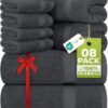 Utopia Towels 8 Piece Premium Towel Set, 2 Bath, 2 Hand, and 4 Wash Cloths, 600 GSM 100% Ring Spun Cotton, Highly Absorbent Towels for Bathroom, Gym, Hotel, and Spa, Grey