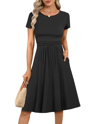- Features – Ruched-waist dress, crew neck, short sleeves, solid color, summer travel dress with pockets, casual and comfortable.