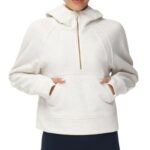 THE GYM PEOPLE Women’s Hoodies Half Zip Long Sleeve Fleece Crop Pullover Sweatshirts with Pockets Thumb Hole Off-white