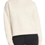 Reebok Women’s Vector Mock Neck Sweatshirt, Standard Fit, Midweight Cotton-Poly Fabric, Alabaster, Small