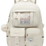VANKANY School Backpack for Teen Girls, Cute Bookbag for Women College Students Aesthetic 17.3in Laptop Bag for Kids Elementary Middle High School, Beige