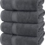 Tens Towels Pack of 4 Extra Large Bath Towels 30 x 60 Inches, 100% Cotton, Larger & Lighter Weight, Quicker to Dry, Super Soft and Absorbent, Perfect for Bathroom, Dark Grey