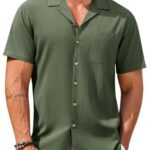 Price: $14.99 Regular Price: $31.99 You Save: 53.1% Buy this item on Amazon About This Item Premium Fabric --- Men's short sleeve button down shirt is made of premium textured fabric,which is breathable,soft and skin-friendly,keeping you cool and comfortable in the summerUnique Design --- Mens beach shirts … [Read more...] about COOFANDY Beach Shirts for Men Short Sleeve Button Up Untucked Linen Summer Shirts Light Khaki