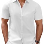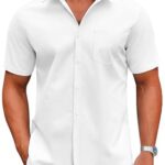 Price: $9.99 Regular Price: $14.99 You Save: 33.4% Buy this item on Amazon About This Item Short Sleeve Dress Shirts: COOFANDY men's button down formal shirt is made of comfortable fabric, ensuring that the shirt fits well, is comfortable and close to the body; making you feel comfortable in all seasons … [Read more...] about COOFANDY Mens Button Up Short Sleeve Shirts Regular Fit Business Casual Shirts Summer Fitted Dress Shirts A-White