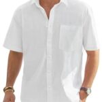 J.VER Men’s Half Sleeve Linen Shirt Solid Casual Button Down Shirts Summer Beach T-Shirt with Pocket White X-Large