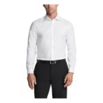 Calvin Klein Men’s Non Iron Stretch Slim Fit Unsolid Solid Dress Shirt Shirt, White, 15.5″ Neck 32-33″ Sleeve