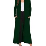 Bluetime Women Floor Length Open Front Cardigan Lightweight Long Sleeve Maxi Duster with Pockets (XXL, Dark Green)