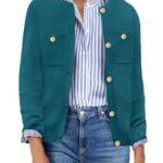 Zeagoo Womens Knit Cardigan Sweaters Button Down Shirts Long Sleeve Crew Neck Ribbed Knit Blouse Open Front Work Tops Peacock Blue