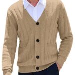 COOFANDY Men’s Lightweight Cardigan Sweater Soft Cable Knit Buttons Sweater Dress Cardigan with Ribbing Edge Khaki