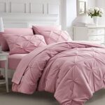 Ubauba 7pc Pink Queen Comforter Set, Pintuck Bed in a Bag Blush Bed Set with Comforters and Sheets 7 Piece, All Season Pinched Bedding Sets for Women (Pink,Queen Size)