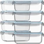Razab 16 Pc (Set of 8) 30 Oz Glass Meal Prep Containers with Lids, Airtight Large Glass Food Storage Containers, Reusable Leak Proof BPA Free, Freezer to Oven and Dishwasher Safe