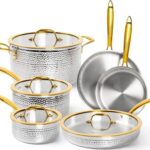 Price: $299.99 Regular Price: $499.99 You Save: 40.0% Buy this item on Amazon About This Item *PREMIUM TRIPLY 18/10 STAINLESS STEEL CONSTRUCTION* Crafted with premium tri-ply 18/10 stainless steel, this cookware set offers superior durability, even heat distribution and resistance to rust. Compatible with … [Read more...] about Michelangelo Triply Stainless Steel Pots and Pans Set, 10-Piece Hammered Stainless Steel Cookware Set with Golden Handle, Premium Induction Kitchen Cookware, Oven Safe