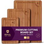 ROYAL CRAFT WOOD Wooden Cutting Boards for Kitchen Meal Prep & Serving – Bamboo Wood Serving Board Set with Deep Juice Groove Side Handles – Charcuterie & Chopping Butcher Block for Meat (3 Pcs)