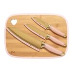 Paris Hilton Reversible Bamboo Cutting Board and Cutlery Set with Matching High Carbon Stainless Steel Knives, Blade Guards, Sleek Yet Comfortable Handle Grips, 7-Piece Set Gold, Pink