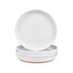 Yinshine 4 Piece Stoneware Plate Sets, White Ceramic Dinner Plates, 10 Inch Modern Porcelain Serving Plates, Scratch Resistant, Microwave&Dishwasher Safe,White(Brown Bottom)