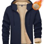 MAGCOMSEN Fleece Lined Zip Up Hoodie Men Warm Sherpa Lined Hoodie Winter Thicken Fuzzy Jacket Active Fall Jacket Navy M