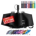 LANBRELLA Compact Reverse Folding Umbrella Auto Windproof Travel Umbrella-Black