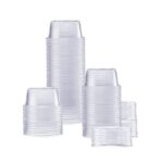 GUSTO [2 oz.-100] Count Clear Disposable Plastic Portion Cups with Lids – Soufflé Cups, Jello Shot Cups With Lids, Clear Plastic Containers Perfect for salad Dressing and More- Formerly Comfy Package