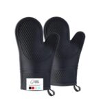 CHEF ELITE Silicone Oven Mitts – Oven Mitts Heat Resistant to 500°F, Extra Long Oven Gloves for Cooking, Baking & BBQ – Waterproof, Cotton Lined, BPA-Free Pot Holders (Black)