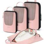 BAGSMART 4 Set Compression Packing Cubes for Travel, Packing Cubes for Luggage Travel, Lightweight Packing Suitcase Organizers with Shoe Bag