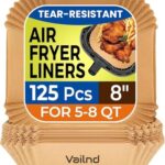 Air Fryer Paper Liners, 125Pcs Parchment Paper, Air Fryer Liners Disposable for Microwave, Non-Stick Air Fryer Liner Square Free of Bleach (8IN)