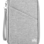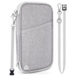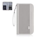 Playexen Family Passport Wallet with RFID Blocking, Travel Passport Holder with Wrist Strap, Travel Document Organizer Zipper Pouch for Women Men (Gray)