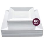 Aya’s 60ct White Square Disposable Plates – Heavy Duty Plastic Party Plates for Christmas, Thanksgiving (30 Dinner & 30 Salad)