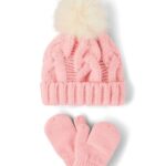 The Children’s Place,Unisex Baby,and Toddler Winter Hat and Mittens Cold Weather Set,Fuzzy Pink Cable Set,2 Years,3 Years
