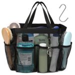F-color Mesh Shower Caddy Portable, Upgrade Deeper 7 Pockets Shower Bag Basket Tote for College Dorm Room Toiletry Bathroom Essentials Gym Camp Quick Dry 2 handles with S Hook, Black