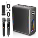 Karaoke Machine with Two Wireless Microphones, Powerful Portable Bluetooth Speaker for Adults & Kids, PA System with 2 Voice Mode, LED Lights, Supports BT/TWS/AUX/USB/TF for Party (Black)