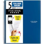 Five Star Spiral Notebook + Study App, 5 Subject, College Ruled Paper, 8-1/2″ x 11″, 200 Sheets, Fights Ink Bleed, Water Resistant Cover, Black (72081)