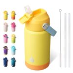 BJPKPK Insulated Water Bottle with Straw Lid, 12oz Thermo Water Bottles with Soft Nozzle, Flex Handle & Non-slip Boot, BPA Free Leak Proof Stainless Steel Metal Thermo, Tumblers, Cups,Yellow
