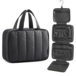 BAGSMART Travel Toiletry Bag for women, Portable Hanging Hook Makeup Bag Organizer, Waterproof Makeup Cosmetic Bag, for Full-Size Accessories, Toiletries,Black