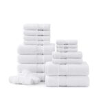 LANE LINEN 100% Mercerized Cotton Luxury Bathroom Towel Set – 18 Pcs – Super Soft, Fluffy & Highly Absorbent – 6 Bath Towels, 6 Washcloths, 6 Hand Towels – Complete Family Pack – White Bath Towel Set