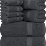 Utopia Towels 8 Piece Premium Towel Set, 2 Bath, 2 Hand, and 4 Wash Cloths, 600 GSM 100% Ring Spun Cotton, Highly Absorbent Towels for Bathroom, Gym, Hotel, and Spa, Grey