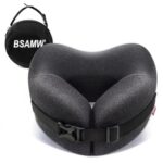 BSAMW Travel Neck Pillow for Airplane – Vacuum Compressed Memory Foam, Ergonomic Neck Support, Soft & Washable Cover, Travel Accessories for Sleeping in Flight, Car, Train, Office Use (Black)