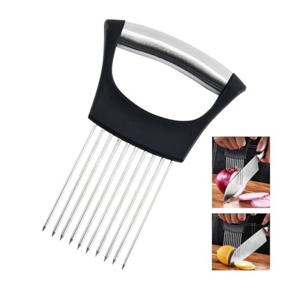 - Onion Slicer: This slicer features a unique design with 10 stainless steel forks under the handle, making slicing quick and easy. It includes a comfortable grip and non-slip design for added convenience